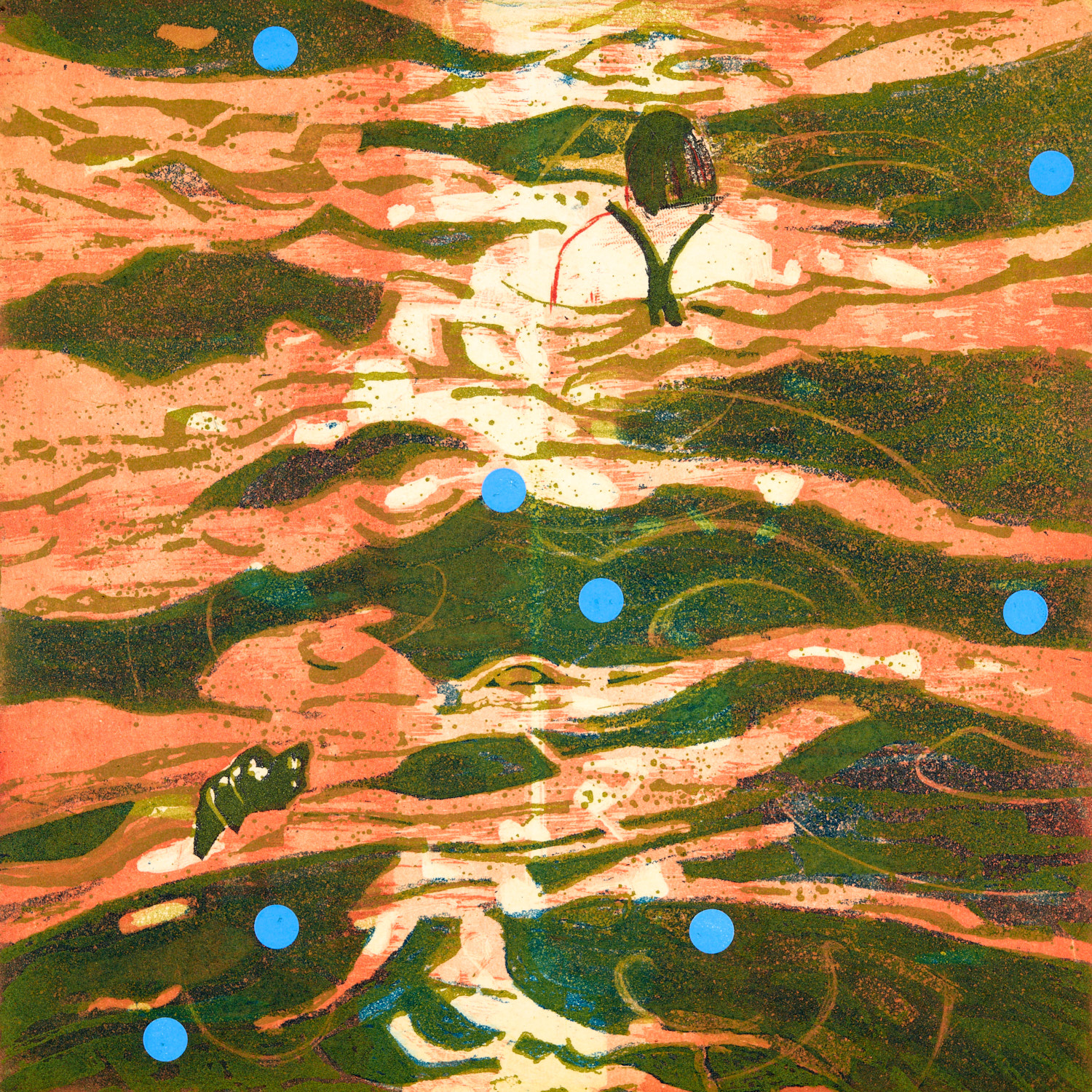 Etching aquatint and printed Blick Stickers on Zerkall 350g. 20×20 cm